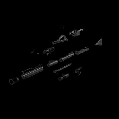 Includes the base blaster as well as a top sight, nozzle, and side sight that make this rifle unique from a typical DC-15