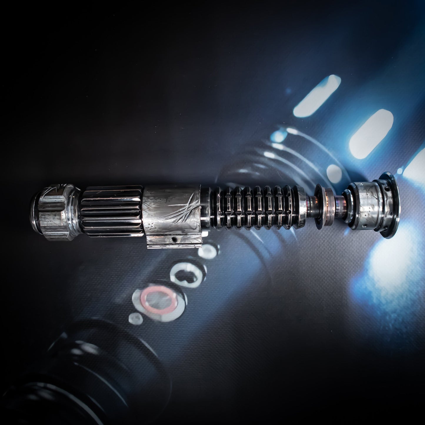 Discover the strength and durability of our lightsaber hilts, expertly crafted from aluminum alloy. These robust hilts feature multiple disassemblable sections, enabling you to unleash your creativity and customise your sabers with alternative parts, creating a unique and personalised lightsaber that matches your style.